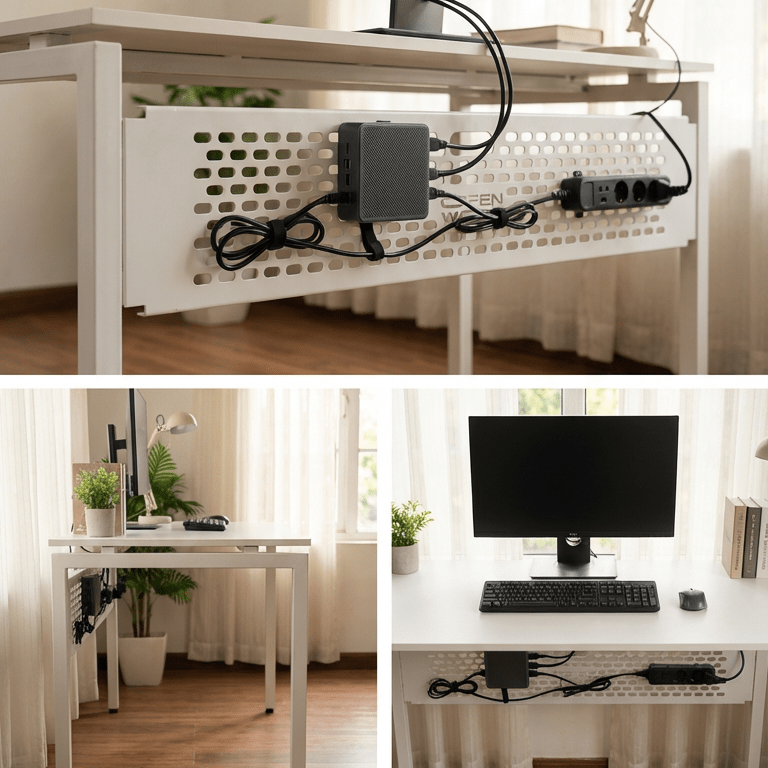 This self-assemble modular desk comes with all necessary screws and an Allen key, making it easy to set up without professional help. The table is designed for expansion — future accessories like cable management trays and hanging organizers can be added effortlessly.